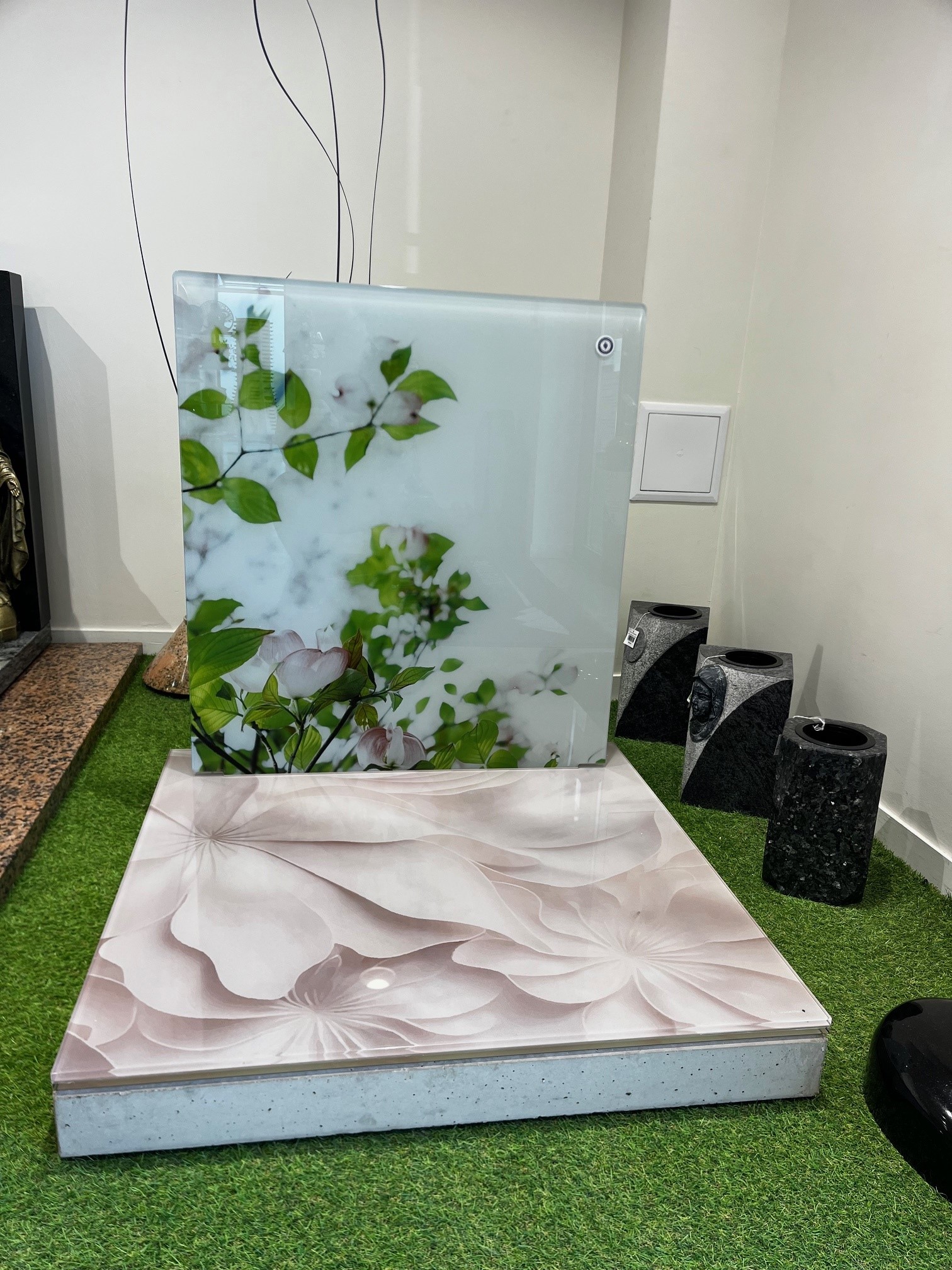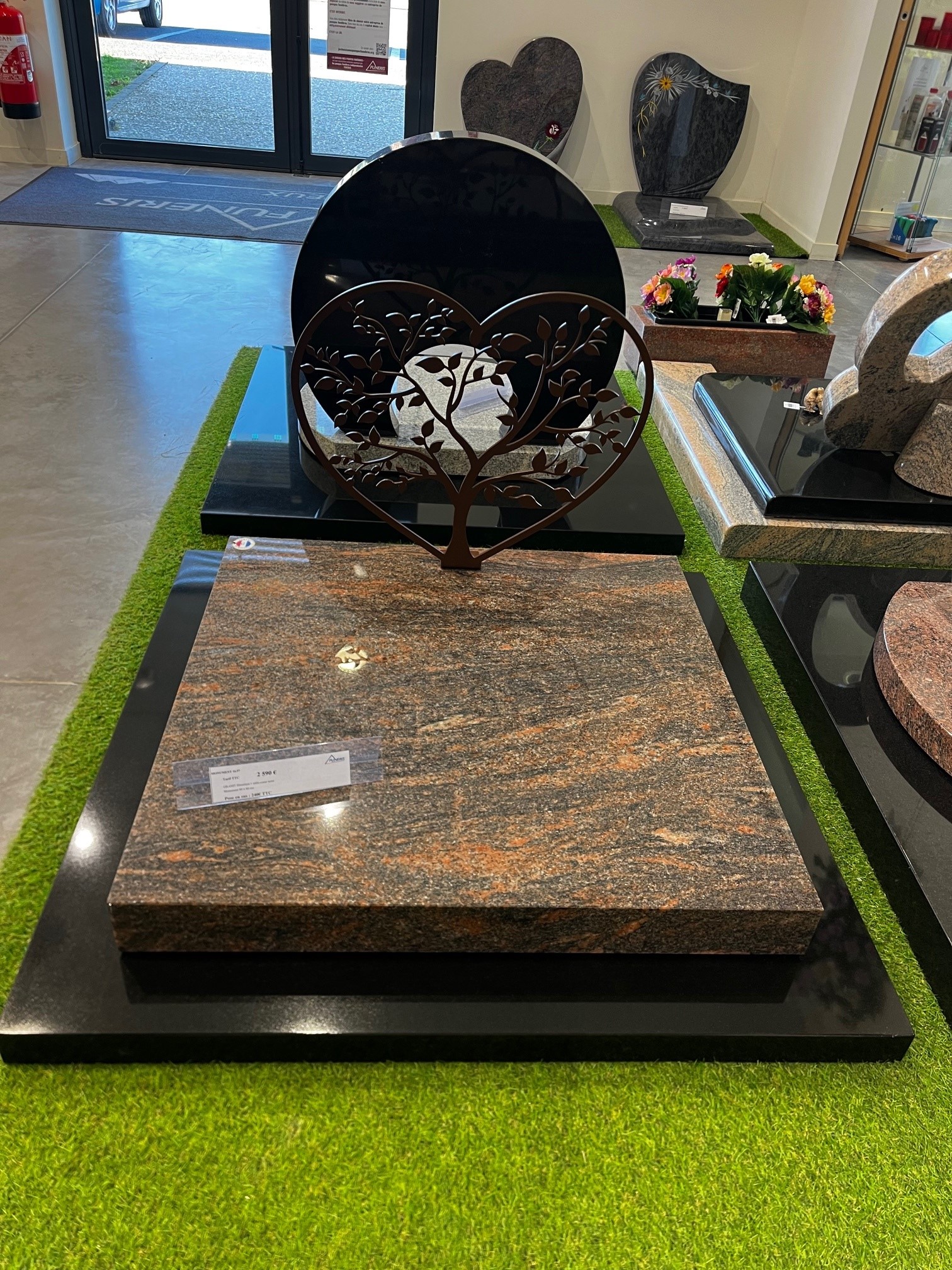 Nos monuments sont exposés sans leur semelle, qui est, pour la plupart des modèles, disponible dans le granit identique au monument. Chaque cimetière ayant ses spécificités (dimensions, hauteurs de placages…), nous les préparons pour chaque commande.